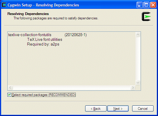 ... Archive p7zip sharutils unzip zip ... Database perl-DBI ... Devel ascii binutils bison gcc4-* # download gcc4 rather than gcc since newer CPAN modules need it make openssl-devel patchutils perl-ExtUtils-Depends perl-Ext-Utils-PkgConfig zlib-devel Doc cygwin-doc cygwin-x-doc man perl-manpages textinfo xorg-docs xpdf Editors emacs emacs-X11 joe nano ted vim xemacs xemacs-emacs-common xemacs-tags ... Graphics GraphicsMagic ImageMagic ImageMagic-doc bmp2png epstool ghostscript ghostscript-fonts-other ghostscript-fonts-std gnuplot gv jpeg perl-Graphgics-Magic perl-Image-Magic plot-utils tiff xfig Interpreters emacs-el gawk perl ... Libs zlib Math bc xcalc ... Net openssh openssl perl-Net-Libproxy stunnel ... Perl perl perl-XML-Simple perl-libwin32 perl-ming pwget Publishing pdftk ... System util-linux ... Text a2ps aspell aspell-en groff gv less test2html tidy Utils bzip2 cpio diffutils gnupg ncurses Web curl links lynx webcheck wget wput X11 font-adobe-dpi100 font-adobe-dpi75 font-alias font-bitstream-dpi100 font-bitstream-dpi75 font-daewoo-misc font-dec-misc font-encodings font-isas-misc font-jis-misc font-util font-xfree86-type1 fontconfig freetype2 imake xauth xclock xfig xfig-lib xfontsel xhost xinit xkeyboard-config xlsfonts xman xmore xorg-docs xorg-scripts xorg-server xorg-server-common xorg-util-macros xpdf xset xterm xwd xwud