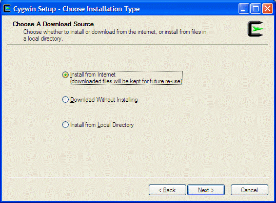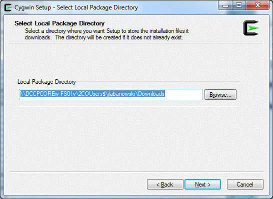 Click [Next]. Now, you will have to make some choices depending on the fact if you have Administrator privileges. If you do not, you cannot install fully functional Cygwin (though even the partially functional Cygwin is better than Windoz). You usually do not have access to the top folder on your C: drive. They usually give you some writable folder under C:\Users\<YourLoginName> where you can create a directory cygwin that will be a top root directory for your installation. Make sure that the directory path for your Cygwin installation does not have spaces in it, or you will have a lot of problems, since you will have to use quotes to access it for every and any command. First of all, your username should not have spaces in it. If it has, you are hosed, and your sysadmins are idiots.
